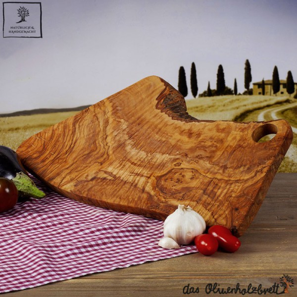 Olivenbäume werden erst für den Holzhandel freigegeben, nachdem sie keine Früchte mehr tragen. Also ein Vorbild in der Nahrungsmittelgewinnung und eine perfekte Synergie zwischen Mensch und Natur. Jedes Produkt wird nach traditionellen und qualitativ höchsten Methoden handgefertigt und abschließend eingeölt. Also ein wunderbares Stück Natur und Lebensfreude......Perfekt geeignet als dekorative Servierplatte für Käse-, Wurst-, Brotzeit- oder Antipastiplatten...